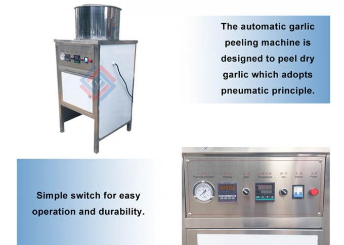 Obieraczka do czosnku jest sterowana za pomocą trzech przełączników: podawania, obierania i rozładowywania. Zawartość wilgoci w czosnku musi być obrana lepiej kontrolowana przy 35% -45%. czas karmienia należy ustawić na 3s-5s za pomocą przełącznika podawania; przełącznik obierania ustawiony na 5s-8s, przełącznik rozładowania ustawiony na 3s-5s po uruchomieniu sprężarki powietrza, włóż czosnek do wlotu, ustaw czas kontrolowany przez trzy przełączniki, gdy ciśnienie powietrza osiągnie 0,8-0,9Mpa, pojawi się przepływ powietrza do 1,06 m³ / min, a następnie włącz maszynę do obierania czosnku, ta maszyna automatycznie obiera czosnek bez zranienia czosnku.