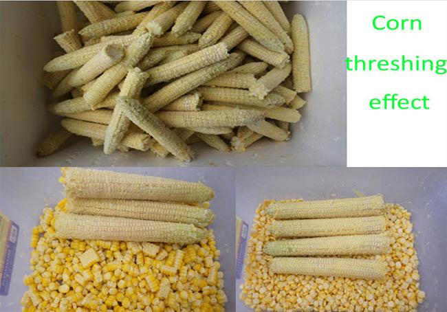 Ta maszyna służy do oddzielania ziarna kukurydzy od trzonu centralnego, do świeżej kukurydzy, kukurydzy cukrowej lub kukurydzy mrożonej. Głębokość omłotu można regulować, dopasowując do wymaganej fabryki przetwarzania żywności. można zmontować za pomocą linii przenośnika, aby uzyskać większą produkcję.