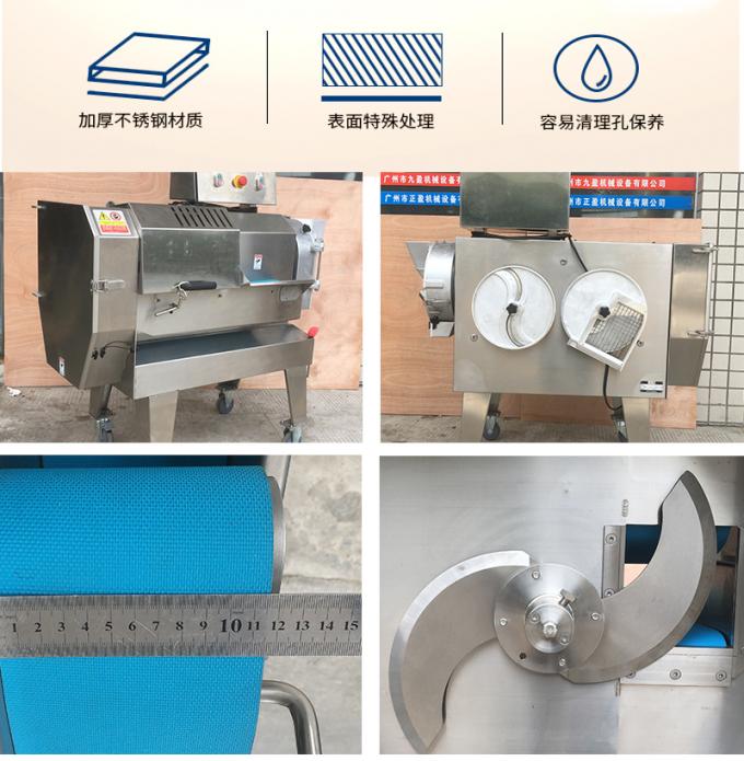 Wielofunkcyjna kostka marchewkowa Pieces Cutter Strips ma podwójną funkcję FM. Jeden koniec to cięte warzywa liściaste, takie jak długa cebula, kiełki czosnku, pory, seler, kapusta, zielone warzywa itp. Jeden koniec to cięte cebulowe korzenie, takie jak rzodkiewka, ziemniaki, słodkie ziemniaki, pieczywo na parze, pędy, cebula, bakłażany, jabłka, imbir i wiele innych owoców i warzyw. Może być krojony (grubość można dostosować), niszczony (grubość można dostosować), krojony na odcinki (z regulacją długości), krojony w kostkę (rozmiar można dostosować). Prędkość przenośników taśmowych i prędkość kutrów warzyw liściastych są regulowane za pomocą przetwornic częstotliwości i mogą być kontrolowane niezależnie. Jest wszechstronny z jedną maszyną, wydajną funkcją, wysoką wydajnością, wygodną wymianą noża, prostą obsługą, wygodnym czyszczeniem i nadaje się do fabryki żywności, przemysłu gastronomicznego, jadalni, centrum dystrybucji gastronomii.